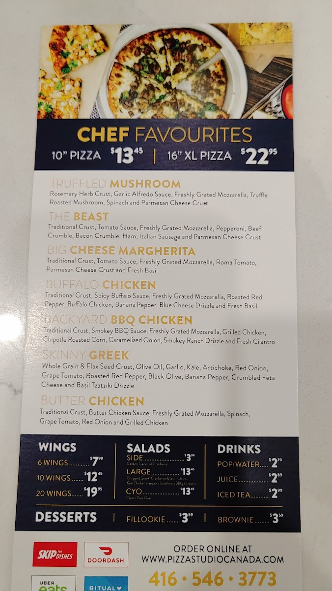 Welcome to Pizza Studio, a culinary haven located at 500 Church St Unit 3, Toronto. Here, pizza becomes an artistic expression with their signature Create Your Own Masterpiece option, allowing you to craft a 10" pizza with unlimited premium toppings. From 21 topping choices to various crusts and base sauces, creativity knows no bounds.